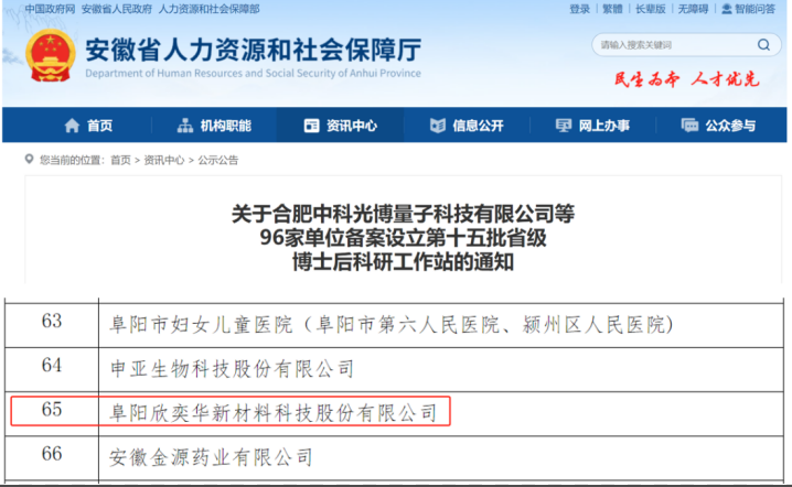11月26日,安徽省人力資源和社會保障廳公布備案設(shè)立第十五批省級博士后科研工作站名單:阜陽欣奕華新材料科技股份有限公司(簡稱“欣奕華材料”)成功獲批設(shè)站。