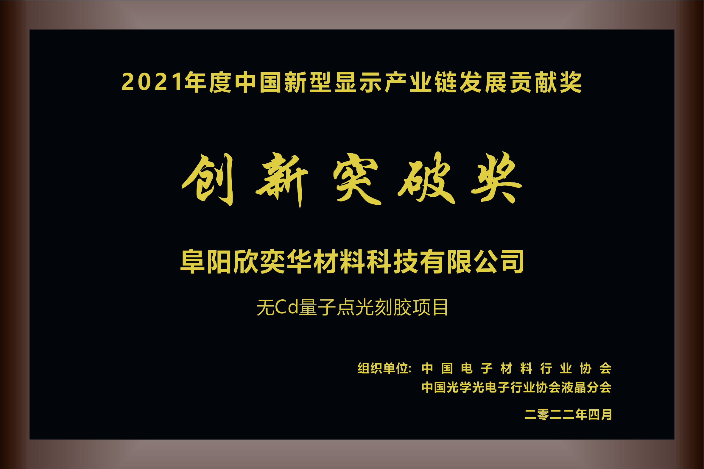 憑借不斷的技術(shù)深耕、創(chuàng)新突破和市場(chǎng)突破,欣奕華材料獲評(píng)國(guó)家級(jí)專精特新“小巨人”企業(yè)——被譽(yù)為全國(guó)中小企業(yè)評(píng)定工作中最高等級(jí)、最具權(quán)威的榮譽(yù)稱號(hào);斬獲由國(guó)際信息顯示學(xué)會(huì)(SID)評(píng)選的國(guó)際大獎(jiǎng)——ICDT“年度最佳顯示組件產(chǎn)品獎(jiǎng)”;連續(xù)五年被行業(yè)協(xié)會(huì)授予中國(guó)新型顯示產(chǎn)業(yè)鏈貢獻(xiàn)獎(jiǎng);獲得中國(guó)海關(guān)AEO高級(jí)企業(yè)認(rèn)證——海關(guān)最高信用等級(jí)企業(yè);光刻膠產(chǎn)品經(jīng)安徽省首批次新材料評(píng)定達(dá)到“國(guó)際先進(jìn)水平、實(shí)現(xiàn)自主供應(yīng)能力”;榮獲京東方全球創(chuàng)新伙伴大會(huì)“杰出戰(zhàn)略合作伙伴獎(jiǎng)”;榮獲TCL華星供應(yīng)鏈大會(huì)“優(yōu)秀合作伙伴獎(jiǎng)”;獲得國(guó)家高新技術(shù)企業(yè)、安徽省制造業(yè)單項(xiàng)冠軍培育企業(yè)、安徽省專精特新中小企業(yè)、安徽省企業(yè)技術(shù)中心、安徽工業(yè)精品等行業(yè)客戶及國(guó)家、省市各級(jí)榮譽(yù)和相關(guān)認(rèn)證60余項(xiàng),獲得一系列科創(chuàng)領(lǐng)域榮譽(yù)和認(rèn)可。