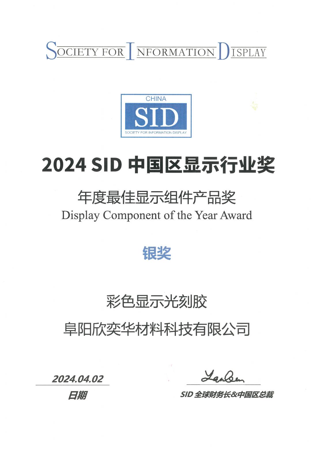 憑借不斷的技術深耕、創(chuàng)新突破和市場突破,欣奕華材料獲評國家級專精特新“小巨人”企業(yè)——被譽為全國中小企業(yè)評定工作中最高等級、最具權威的榮譽稱號;斬獲由國際信息顯示學會(SID)評選的國際大獎——ICDT“年度最佳顯示組件產品獎”;連續(xù)五年被行業(yè)協(xié)會授予中國新型顯示產業(yè)鏈貢獻獎;獲得中國海關AEO高級企業(yè)認證——海關最高信用等級企業(yè);光刻膠產品經安徽省首批次新材料評定達到“國際先進水平、實現(xiàn)自主供應能力”;榮獲京東方全球創(chuàng)新伙伴大會“杰出戰(zhàn)略合作伙伴獎”;榮獲TCL華星供應鏈大會“優(yōu)秀合作伙伴獎”;獲得國家高新技術企業(yè)、安徽省制造業(yè)單項冠軍培育企業(yè)、安徽省專精特新中小企業(yè)、安徽省企業(yè)技術中心、安徽工業(yè)精品等行業(yè)客戶及國家、省市各級榮譽和相關認證60余項,獲得一系列科創(chuàng)領域榮譽和認可。